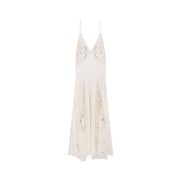 エリザベスフランキ レディース ワンピース トップス Red Carpet Dress In Silk Georgette Fabric And Embroidered Lace White