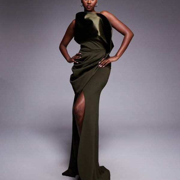 エイソス ASOS asos ASOS DESIGN プレミアム レッドカーペット マキシドレス(ハイヒップディテール、カーキ) ワンピース レディース 女性 インポートブランド 小さいサ..
