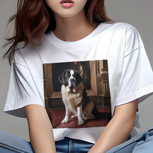 Tシャツ レディース 犬ファン 半袖 春夏 犬柄 プリント カジュアル かわいい 人間用 フィットネス ダンス 肖像画 セントバーナード アンティーク家具 レッドカーペット