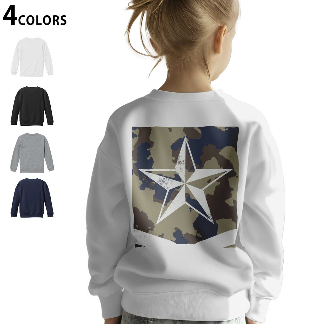 選べる3カラー バックプリント スウェットレーナー キッズ 男女兼用 男の子 女の子 ユニセックス unisex 長袖 デザイン リブ ホワイト ブラック 白 黒 グレー ネイビー 1..