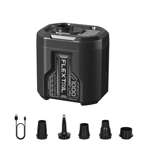 FLEXTAILGEAREVOPUMP3エアポンプ電動ポンプ携帯ポンプ5kPa強力1000L/分1300mAH電池内蔵空気入れ空気抜き両対応5種類のノズル付きインフレーターマットプール真空圧縮袋浮..