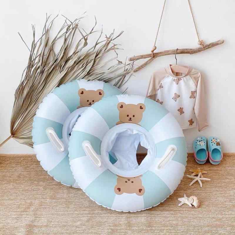 浮き輪 ベビー 子供用 赤ちゃん 座付き 安全設計 安定感抜群 水遊び クマ柄 かわいい おしゃれ プール 海水浴 川遊び 夏 スイミング レジャーグッズ エコPVC素材