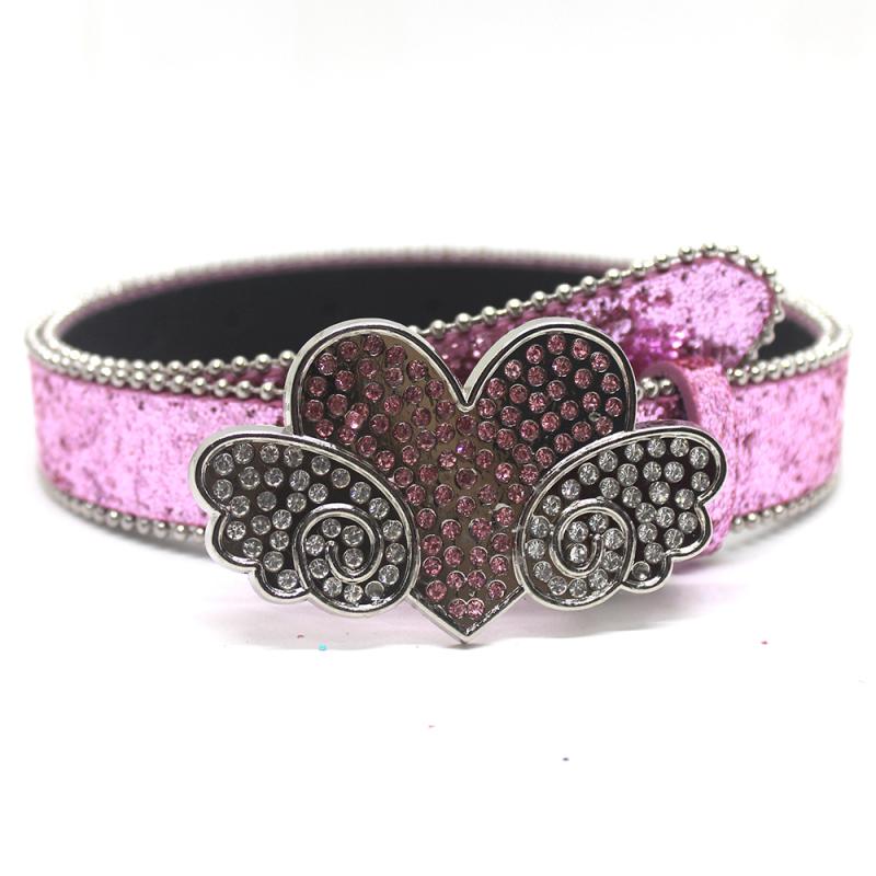 ベルト レディース PUレザー ラインストーン ハート 翼 スパンコール パンク ストリート Y2Kギャル デニムスカート カジュアル スナップボタン ブラック ピンク シルバー..