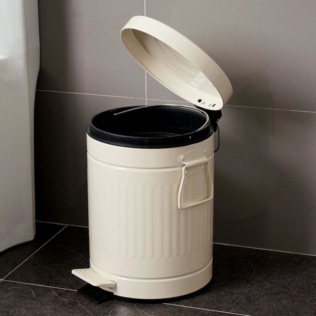 【258時間限定価格】ゴミ箱 丸型ゴミ箱 8L ペダルペール 蓋付き 静音 シンプル おしゃれ アイボリー色 大容量 ローマンストライプ