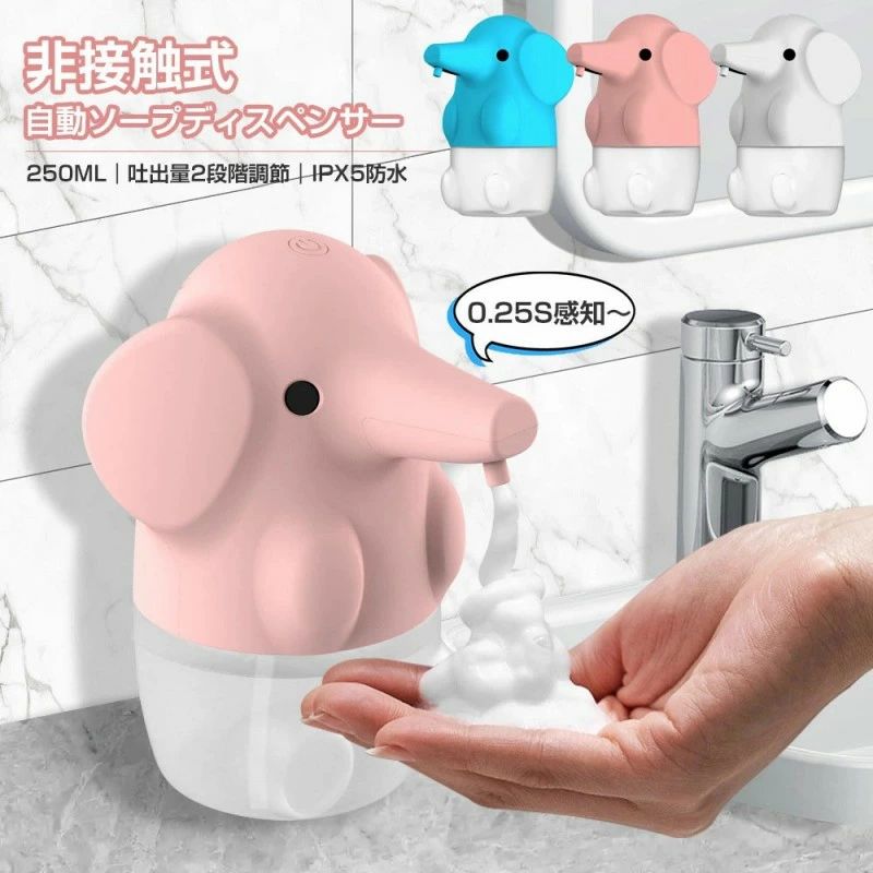 商品名:自動ソープディスペンサー サイズ:137*105*164mm 素 材:ABS+PP 本体重量:235g タンク容量:250ml 防水レベル:IPX5 感応距離:2-5CM 電池容量:1200mAh カラー:ホワイト、ピンク、ブルー タイプ:泡タイプ 【高感度赤外線センサー】 非接触式自動ソープディスペンサーは最先進の高感度赤外線センサーが搭載するため、吐出口の5cm以内の感知距離で、手をかざすだけて、自動的にソープが出てきます。ノータッチ式で、手と泡も本体に接触なし、二次汚染を避けて、子供と高齢者も快適に使用できます。 【吐出量2段階調節可】 ハンドソープの吐出量が2段階調節でき、個人の好みや手の汚れ具合に合わせてハンドソープの量が変えられ、出し過ぎを防げて無駄使いを減らせるので経済的です。 【250ML大容量&USB充電式】 ハンドソープを頻繁に補充しなくてもよい250ml大容量ボトル付き自動ソープディスペンサーです。usb充電式コードレスなので配線を気に..