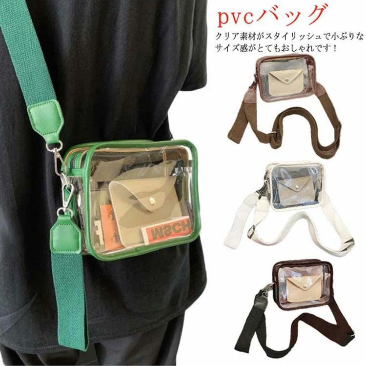 ショルダーバッグ サコッシュバッグ 2way メンズ pvcバッグ ミニバッグ レディース ビニールバッグ ボディバッグ Instagram おしゃれ 斜めかけバッグ ポーチ付き 肩掛け ..