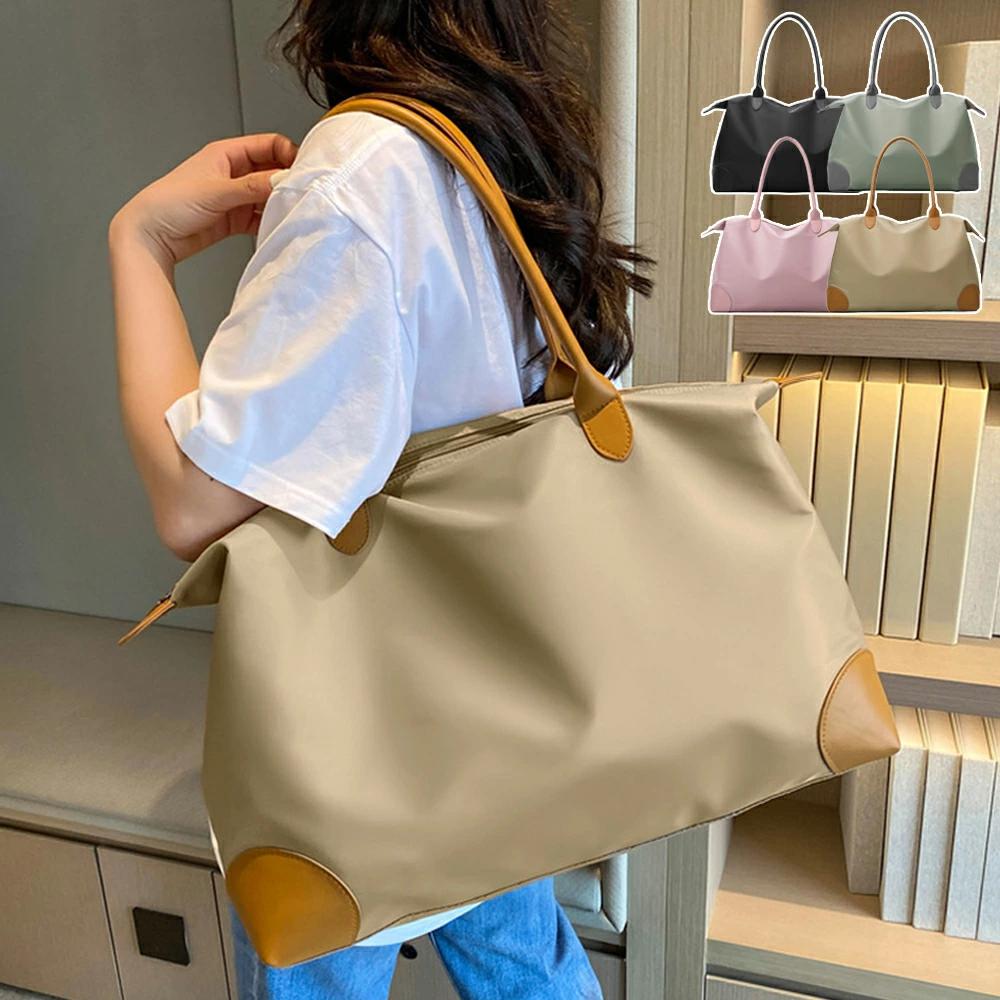 ボストンバッグ 大容量トラベルボストンバッグ レディース レディース軽量 旅行カバン 男女兼用 軽量鞄 出張 軽い 旅行バッグレディース メンズ 出張用バッグ ボストンバック 韓国ファッション レディース ハンドバッグ 肩掛け 大きめトートバッグ シンプル 無地 カジュアル 修学旅行 トラベルバッグ ナイロン ビッグサイズ+マチ付きでとにかく大容量のデザインのボストンバッグです。メイン開閉はファスナーになって、その他背面ファスナー付きポケットと内ポケットも付きで、荷物の出し入れや整理整頓がしやすいです。旅行にはもちろん、ゴルフ・ジムなどのスポーツシーンにも幅広く活躍してくれます。素材:ナイロン+合成皮革+ポリエステルカラー:ブラック/くすみグリーン/ベージュ/ピンクサイズ:高さ:約33.5cm 底横幅:約44.5cm マチ:約16.5cm 持ち手高さ:約19cm(調節不可、取り外し不可)重さ:約467g裏地:あり内ポケット:あり生産国:中国※すべて平..