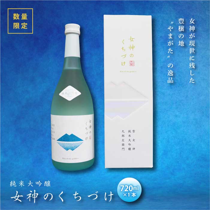 ・ふるさと納税よくある質問はこちら ・寄附申込みのキャンセル、返礼品の変更・返品はできません。あらかじめご了承ください。女神が現世に残した 豊穣の地 “やまがた”の逸品 地元の酒米「雪女神」で地元の蔵人が造る“テロワール日本酒” 日本酒の最高峰を目指し山形県が育んだ酒造好適米「雪女神」を35%まで磨き上げ、清冽な伏流水と米麹のみを使用して純米ならではの“旨み”と“こく”を作り出し、酒蔵の職人がこだわりをもって仕上げました。 調和された華やかな吟醸香を醸し、肴の旨みが溢れんばかりに口の中でマリアージュを奏でるエレガントで贅沢な味わいの日本酒です。 グラスにそっと口を添えて呑めば、飲む人々の感性に優しく語りかけ、姿見えざる女神が現世に残した恵み(くちづけ)を感じられる純米大吟醸です。 商品説明 内容量:純米大吟醸 女神のくちづけ 720ml(化粧箱入り)配送:冷蔵提供元:全農ライフサポート山形 醸造元:有限会社新藤酒..