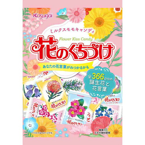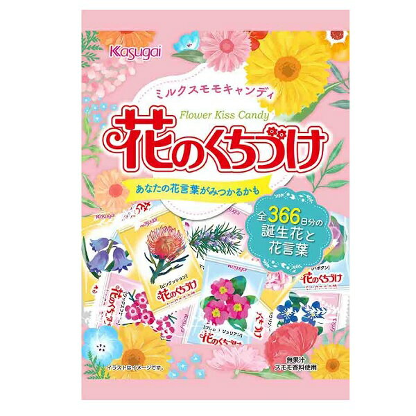 まろやかなミルクスモモ味のキャンディ。 個包装に全366日分の誕生花と花言葉が入り、見た目にも楽しめるキャンディ。【原材料】水あめ(国内製造)、砂糖、加糖れん乳、食用油脂、食塩/酸味料、香料、乳化剤、着色料(赤キャベツ、カロチン)、(一部に乳成分・大豆を含む)【内容量】135g【賞味期限】別途商品ラベルに記載【保存方法】直射日光および高温多湿の場所を避けて保存【製造者】春日井製菓