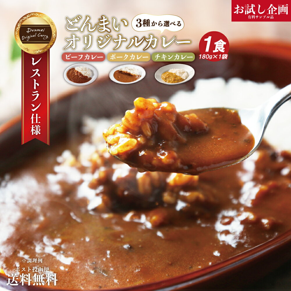 送料無料 どんまいオリジナルカレー1食(180g×1) 3種から選べる レトルトカレー ビーフカレー ポークカレー チキンカレー ポイント消化 お試し 送料無料 ポイント消費 グ..
