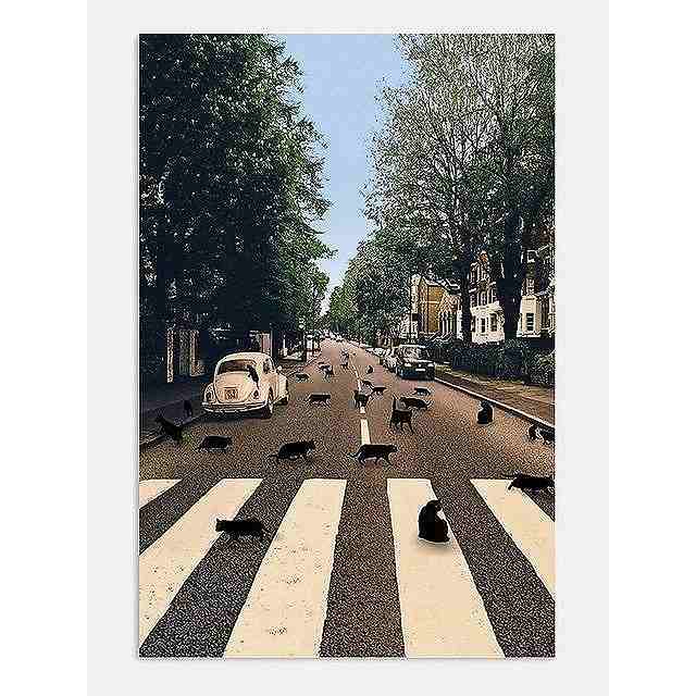 アートポスター フレーム付おしゃれ アートパネル 絵画 壁 絵 ビンテージイラストシリーズ 猫 アビイ・ロード デザインNO-17