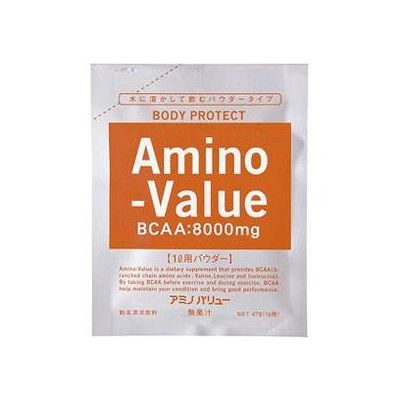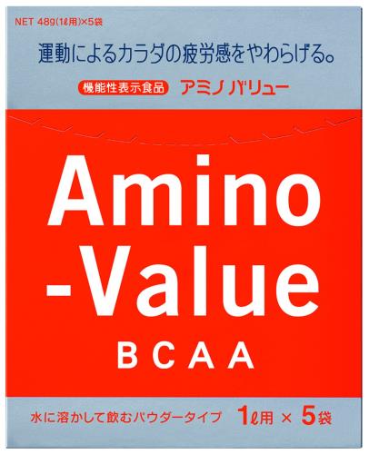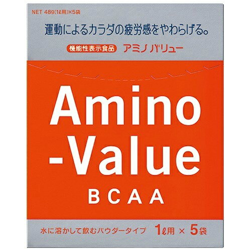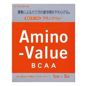 ※パッケージデザイン等は予告なく変更されることがあります。商品説明「アミノバリュー パウダー8000 48g×5袋」は、運動によるカラダの疲労感をやわらげるアミノ酸です。水に溶かして飲むパウダータイプ。スッキリ飲みやすいシトラス風味。機能性表示食品(消費者庁届出番号:B182)。賞味期限等の表記について西暦年/月/日の順番でパッケージに記載。届出表示本品にはBCAA(バリン、ロイシン、イソロイシンの総称)が含まれます。BCAAは運動前や運動中に飲むことにより、運動による体の疲労感をやわらげることが報告されています。お召し上がり方●1日摂取目安量:1袋(48g)●摂取の方法:水1L(コップ約5杯分)に1袋(48g)を全量よく振るなどして溶かし、運動前や運動中にお飲みください。溶かした時にアミノ酸が浮遊する事がありますが、品質には問題ございません。●摂取上の注意:本品は吸湿しやすいので、開封後はすぐにご使用ください。また、溶かした後は冷蔵..