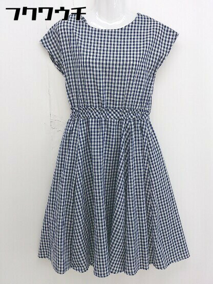 ◇ IMAGE イマージュ チェック ノースリーブ 膝丈 ワンピース サイズ7 ネイビー ホワイト レディース 【中古】