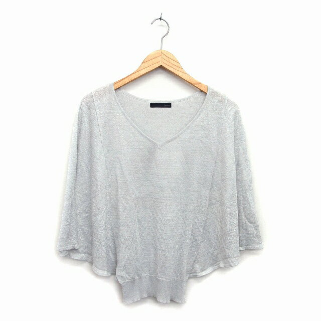 【中古】イマージュ iMAGE ニット カットソー Vネック ドルマンスリーブ 七分袖 綿混 ラメ混 リブ M ライトグレー 灰 /HT26 レディース 【ベクトル 古着】 211222
