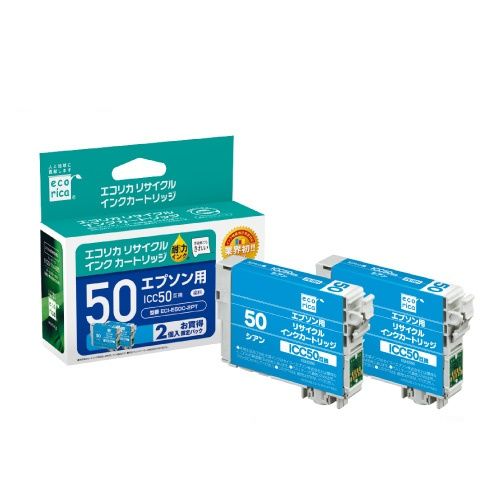 リサイクルインクカートリッジ シアン(染料) [エプソン:ICC50互換] ECI?E50C?2PT 1箱(2個)