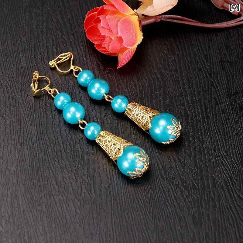 イヤリング レディース チタン鋼製 電気メッキ加工 幾何学型 カラフルビーズ ゴールドカラー 個性的 アフリカ ヨーロッパ 南米 東南アジア 北米 東北アジア 中東