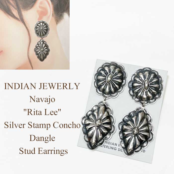 インディアンジュエリー ナバホ族 "Rita Lee" シルバー コンチョ ダングル スタッド ピアスINDIAN JEWERLY Navajo "Rita Lee" Silver Stamp Concho ..