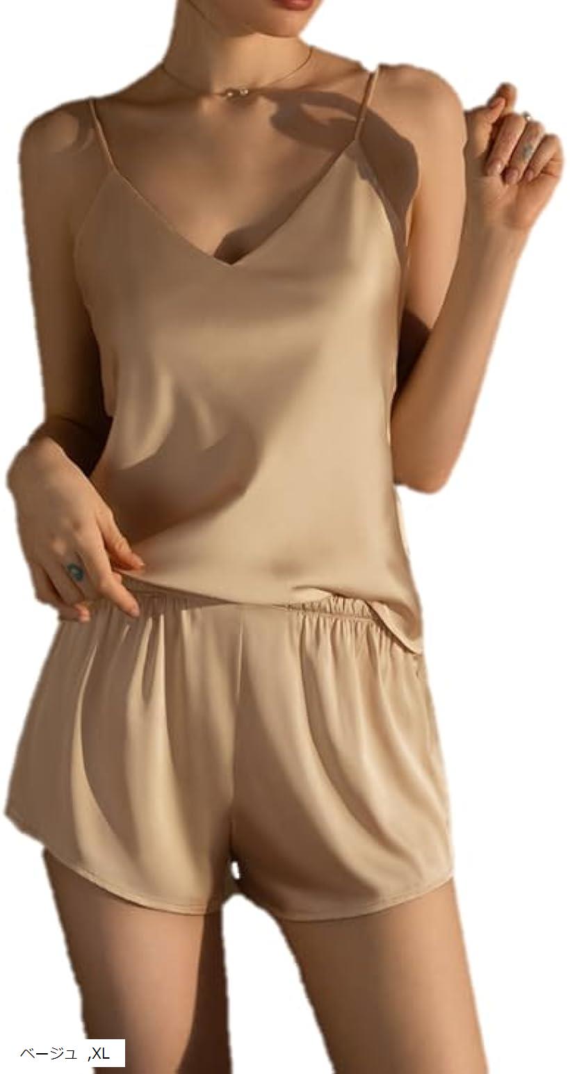 ルームウェア キャミソール ショートパンツ シンプル セットアップ 2点セット カジュアル インナースタイル 部屋着 着心地 レディース (ベージュ, XL)