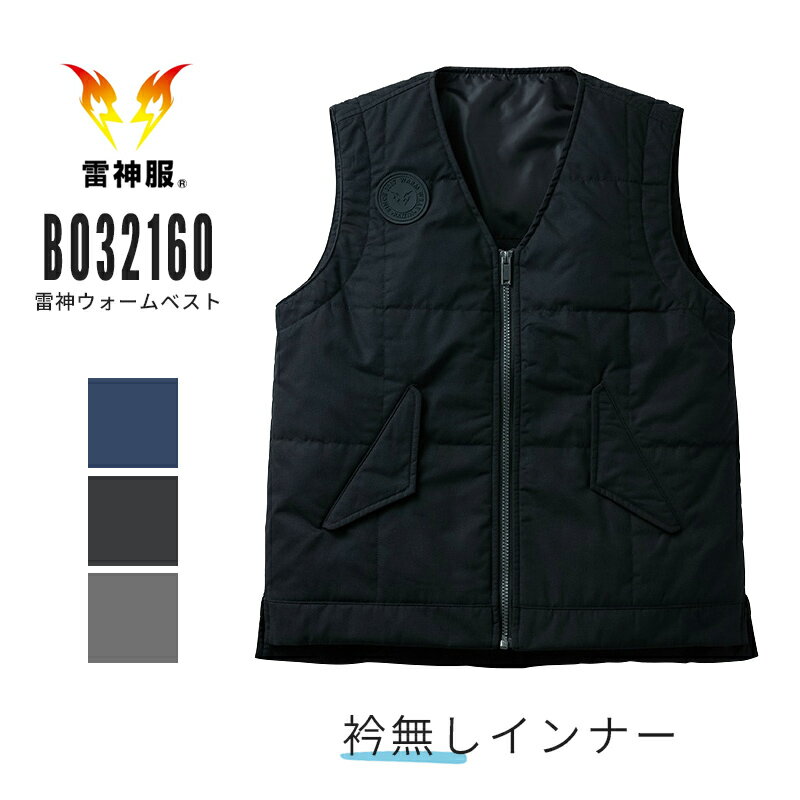 雷神服 サンエス 雷神ウォームベスト 衿無し インナー防寒ベスト BO32160 M~5L 秋冬 作業服 工事現場 福徳産業