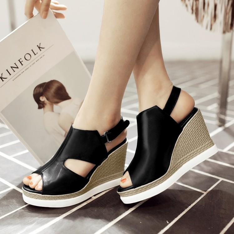 サンダル レディース 大きいサイズ エスパドリーユ 厚底 プラットフォーム ウェッジソール オープントゥ バックル ストラップ 欧米風 カジュアル PUレザー 合成皮革
