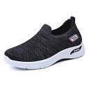 [PAFHL]スニーカーウォーキングシューズスポーツシューズナースシューズ紐なし高齢者超軽量通気滑り止男女兼用(レディースブラック23.5)
