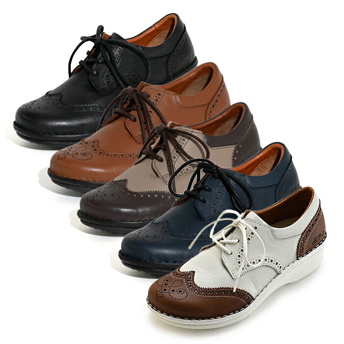 【24SAW新作】大人気ゆったり楽なシューズ 【NO.10483】メダリオン&ウィングチップレースアップシューズ つま先にあしらったメダリオン(穴飾り)とウィングチップ(W文字の装飾)がクラシックなデザイン。靴ひもで調整することで、足にしっかりフィットします。 カラー ブラック、ブラウン、ダークブラウン/グレージュ、ネイビー、オフホワイト/ブラウン 生産サイズ EE 21.5〜25.5cm 素材特長(表/裏) 牛革/羊革 デザイン特長 メダリオン&ウイングチップ ヒール高 3.5cm インソール HPS-1 生産国 ベトナム製