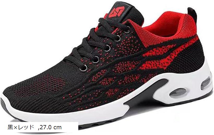 スニーカー メンズ ランニングシューズ ジム 仕事 通勤 通学 普段 ウォーキング 疲れにくい (黒xレッド, 27.0 cm)