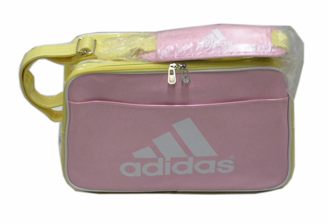 【デッドストック品・返品不可】adidas アディダス エナメルショルダーバッグ E38864 Z7678 エナメルバッグ スポーツバッグ ピンク/イエロー 18リットル