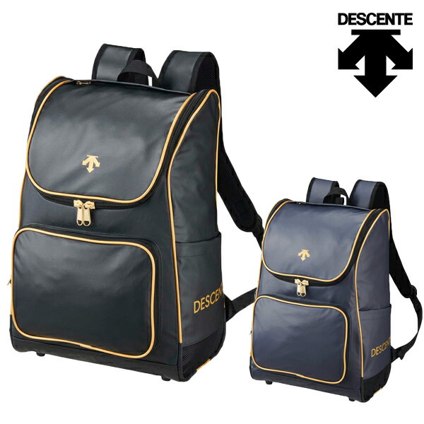 ※ オプション ネーム刺繍はこちら 商品情報 ■ メーカー DESCENTE 【デサント】 ■ 商品名 バックパック ■ 品番 DB4FBP00U ■ カラー BKGD/ブラック×ゴールド NVGD/ネイビー×ゴールド ■ 素材 ポリエステル(表PVC加工) ■ 発売時期 2024 秋冬 ■ 生産国 ベトナム ■ サイズ FREE (34×50×20cm) ■ 詳細情報 本体には表側PVC加工を施し、雨が染み込みにくい生地を使用しています。 裏地にははっ水加工が施されています。メインルームには10コイルのタフなファスナーを使用しています。両サイドポケットは底がメッシュになっており、砂が入っても抜けやすい仕様です。 底部は樹脂パーツのコーナーガードで補強しています。トップにはファスナーポケット。ショルダーハーネス上にはキャップストラップ付き。ショルダーハーネスには、キーホルダーなどをつけれるDカン付き。前面ポケットは取り外し可能です。 部活はもちろん通学にもおススメのアイテムです。..