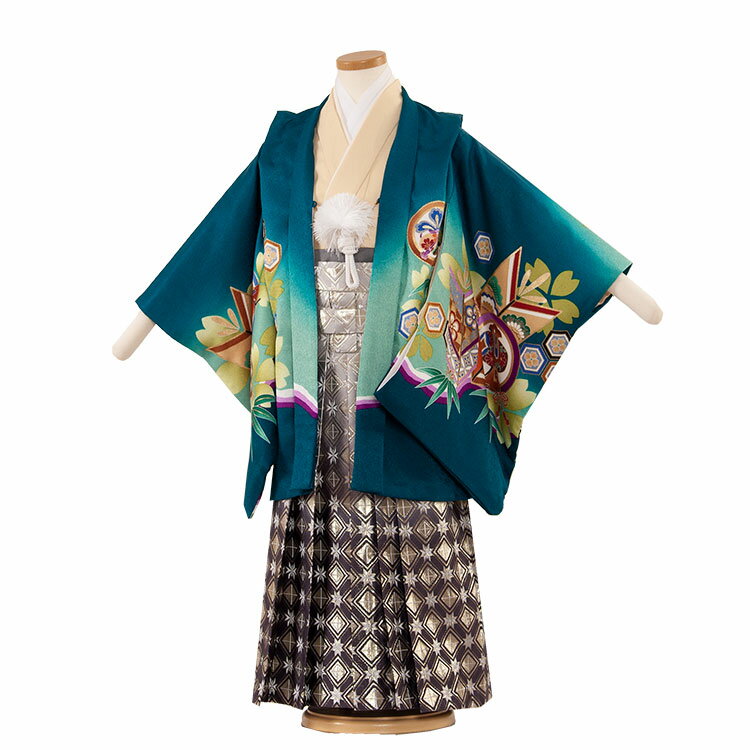 【レンタル】【かんたん着付け袴】七五三 5歳 男の子 5605 エメラルドグリーン 兜 袴レンタル 着物 人気 おしゃれ おすすめ 羽織袴 4歳 5歳 袴 男児 フルセット 簡単着付..