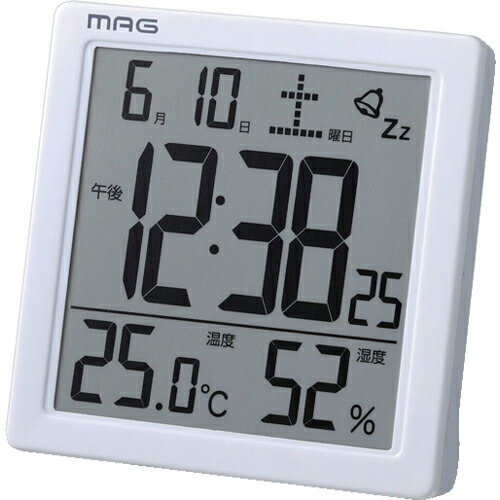 ノア精密 MAG 目覚まし時計 目覚まし時計 デジタル カッシーニ アラーム スヌーズ ライト 温度 湿度 日付 曜日 カレンダー ホワイト T−726WH−Z T-726 WH-Z 【659-0983】