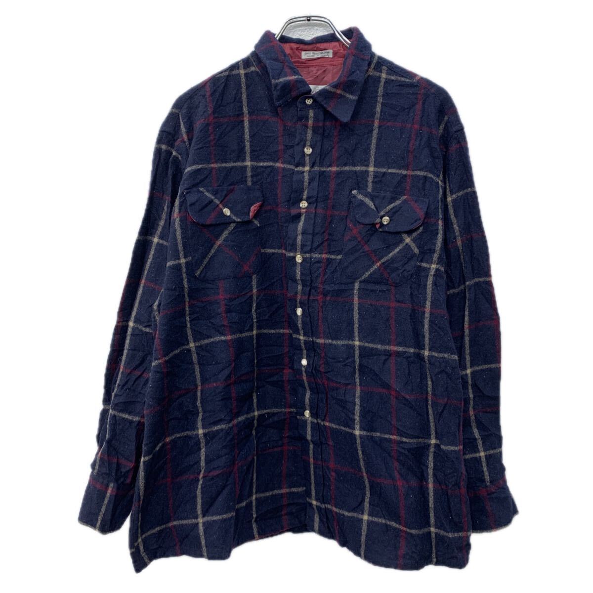 【中古】【古着】 Oleg Cassini 長袖 ネルシャツ XL ネイビー マルチカラー オレグ・カッシーニ ボタン 胸ポケット チェックシャツ 秋物 a712-5164