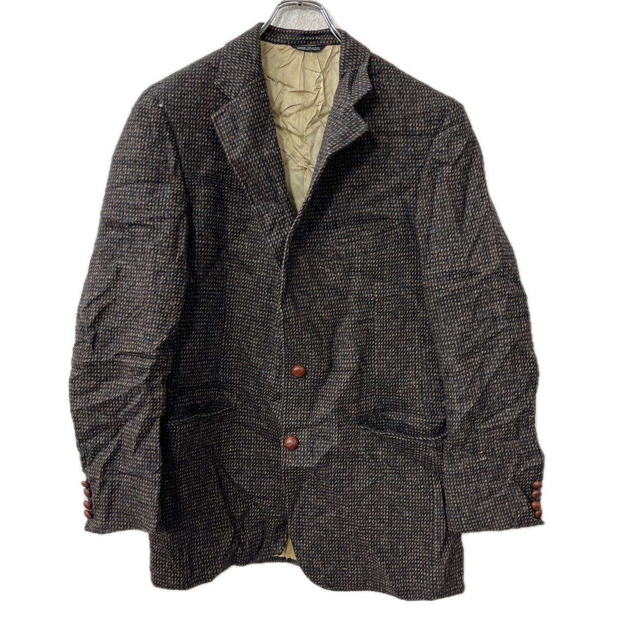 【中古】【古着】 USA製 Oleg Cassini テーラードジャケット M〜 ブラック ブラウン マルチカラー オレグカッシーニ ボタン ブレザー 春秋物 a801-5248
