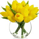 Villa Como 造花 花束 アートフラワー チューリップ 花瓶付き インテリア 枯れない花 母の日 ギフト 家 事務所 店 喫茶店 結婚式 黄色 ?【本物そっくりの美しさ】高さ16cmのコンパクトなサイズながら、14本のチューリップがふんわりと広がり、ガラスの花瓶の口元を優雅に彩ります。高品質PU材質を採用しており、花びらの色合いや質感にこだわり、まるで摘みたてのようなフレッシュな印象を演出します。 ?【高級感のあるデザイン】透明感のあるガラス花瓶に、特殊な人工水を施し、茎がしっかりと固定されています。まるで本物の水に活けたかのような仕上がりで、どの角度から見ても美しく、インテリアに自然に溶け込みます。 ?【大活躍なアイテム】チューリップは「思いやり」「誠実」「幸福」などの花言葉を持ち、大切な人への贈り物や、お部屋に明るさをプラスしたい時にぴったりの花です。カラーによっても意味が異なり、お好みに合わせて選べる楽しさも! ?..