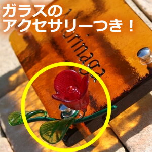 【送料無料】手作りガラス表札「長方形R200セピア」(ガラスのフラワー付き)ひょうさつ【GHO表札】【楽天人気表札】