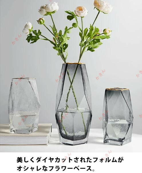 花瓶 おしゃれ フラワーベース インテリア ガラス 大きい 韓国 ガラスの花器 高さ28cm ダイヤ 大型 オシャレ 透明 ゴールド 大きめ 硝子 大 大きいサイズ