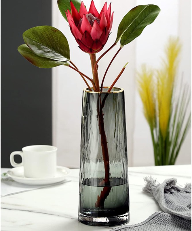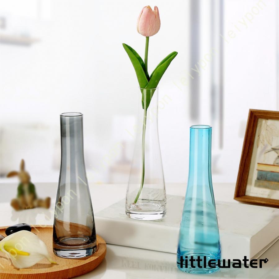 花瓶ガラス フラワーベース 花瓶 おしゃれ 現代シンプル 北欧 透明 広口 花器 インテリア飾り 不規則な形状 透明色 スモークグレー 9cm*27cm