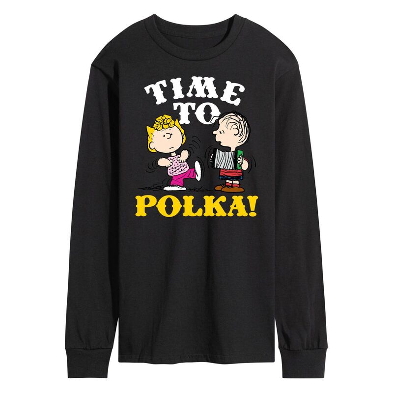 【送料無料】 ライセンス キャラクター メンズ Tシャツ トップス Men's Peanuts Octoberfest Linus and Lucy Polka Long Sleeve Graphic Tee Black