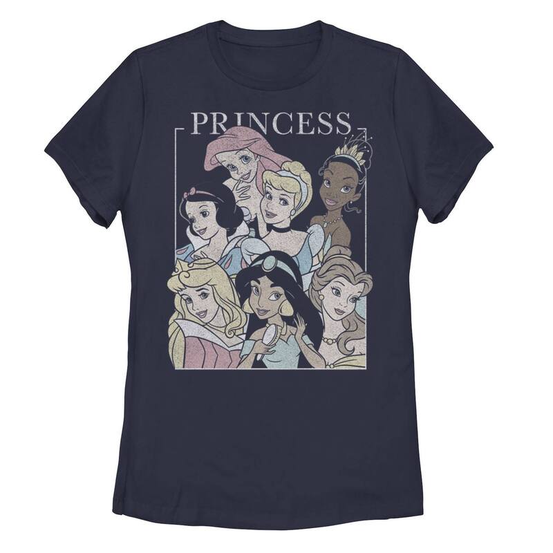 【送料無料】 ライセンス キャラクター レディース Tシャツ トップス Juniors' Disney Princess Group Graphic Tee Navy