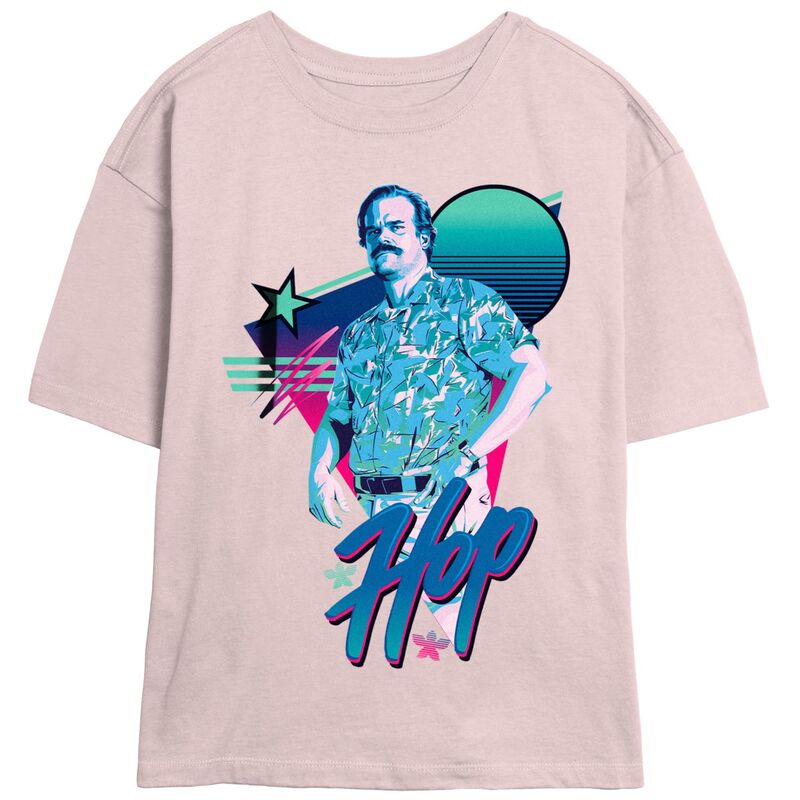 【送料無料】 ライセンス キャラクター レディース Tシャツ トップス Juniors' Stranger Things Chief Hop Poster Skimmer Graphic Tee Blush