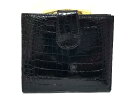 クワンペン 財布 クロコダイル がま口 小銭入れ付き ガマグチ 鰐革 ワニ ブラック 黒 ゴールド金具 KWANPEN 【中古】