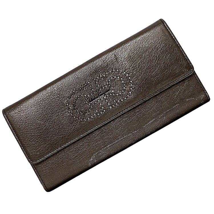 【送料無料】 サルヴァトーレ フェラガモ 二つ折り 長財布 メタリック ブラウン ガンチーニ ec-20697 財布 レザー 中古 Salvatore Ferragamo 小銭入れ有 スタッズ ロゴ ..