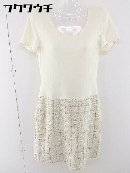 ◇ UNTITLED アンタイトル ラメ 切替 半袖 ミニ ニット ワンピース サイズ 2 アイボリー系 シルバー レディース 【中古】