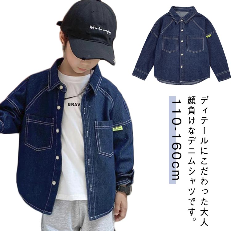 子供 デニムシャツ 長袖 キッズ 男の子 シャツ デニム 長袖 羽織 ライトアウター 子供シャツ ジュニア 長袖シャツ ブラウス 韓国ファッション 可愛い 大きいサイズ カジ..