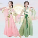 子供用 古典ダンス衣装 女の子 キッズ ダンスウェア 古典舞踊 練習着 ステージ衣装 グラデーション 漢服トップス キャミソール上下5点セットアップ スカートパンツ 長袖 ..