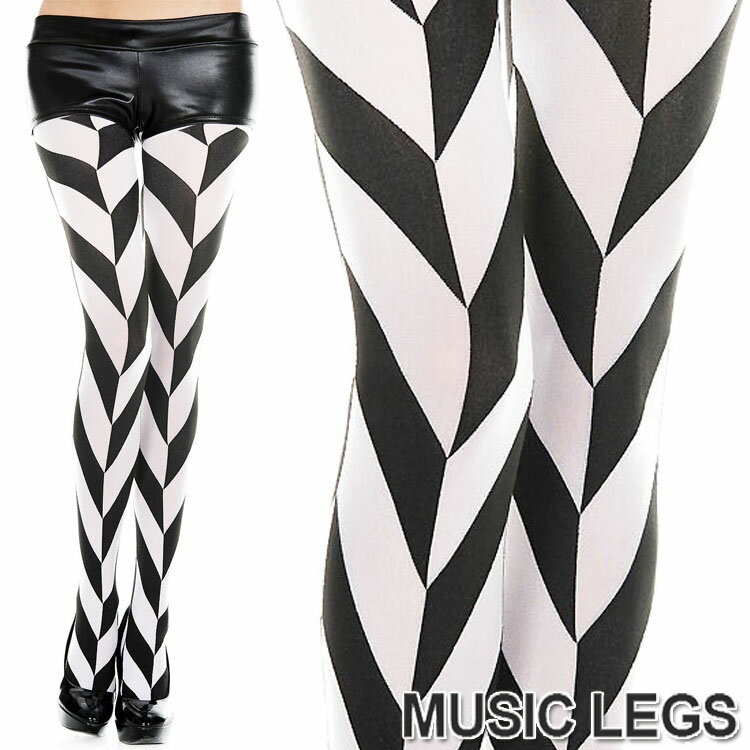 MusicLegs(ミュージックレッグ)ダイアゴナルデザイン黒白タイツ/ストッキング ML7085 ブラック ホワイト モノトーンカラー レディース コスチューム コスプレ 総柄 イベ..