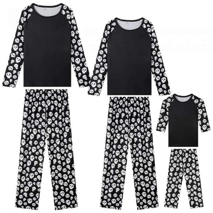 cheibear ハロウィン コスプレ ファミリー パジャマ セット プリント ロング パジャマ トップ お揃い スリープ パンツ レディース 黒 S