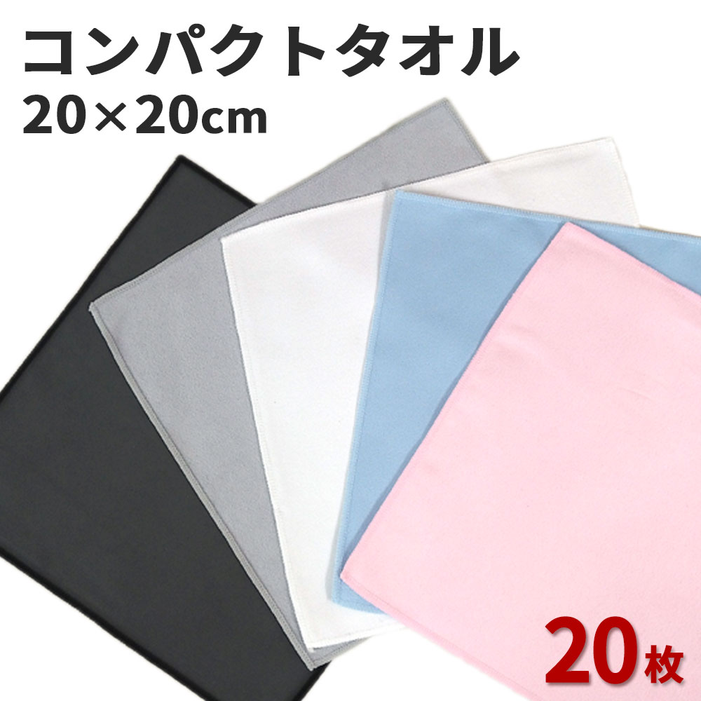ミニタオル マイクロファイバータオル【コンパクト】20cm×20cm【20枚セット】【マイクロファイバークロス】【白】【黒】【チャコールグレー】【グレー】【ピンク】【ブル..