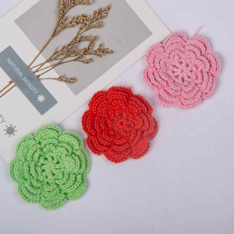アクセサリー 花 かぎ針編み 3層 小さい花 バッグ 靴 帽子 DIY ニット コースター 手作り感 かわいい キュート アイディア満載