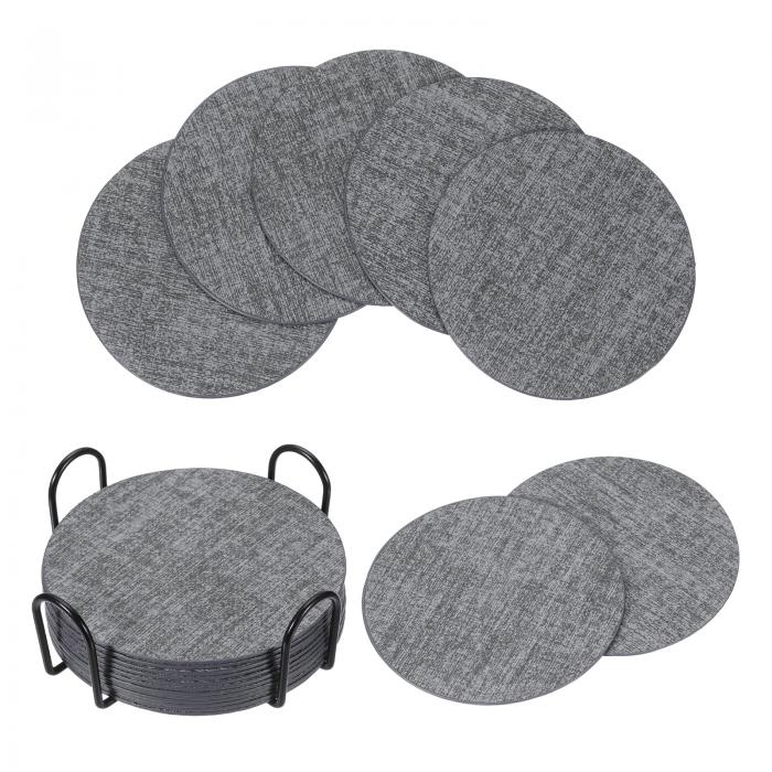 ホルダー付きドリンクコースター12枚 4"x4" PVCデュアルサイドラウンドコースター 滑り止め 非粘着 防水カップコースター 飲み物用 コーヒーテーブル ホームデ..